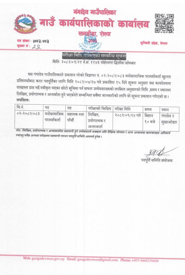 » परीक्षा मिति तोकिएको सम्बन्धि सूचना
