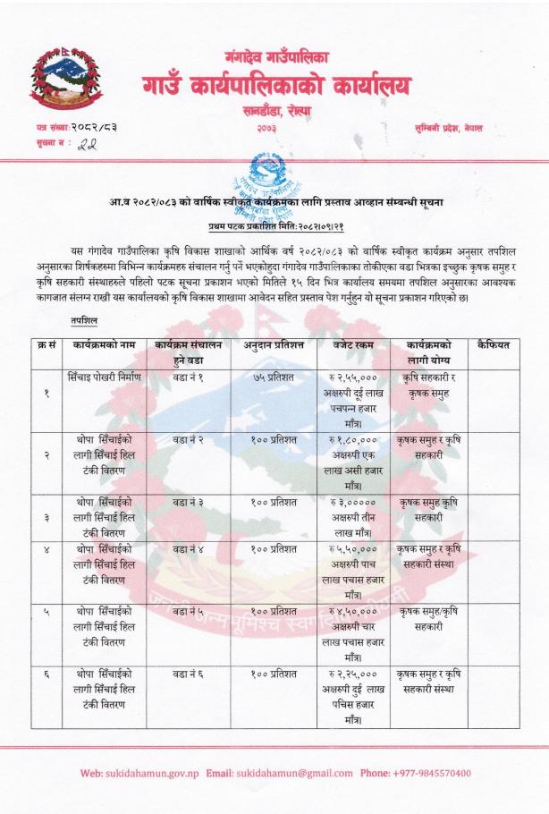 » वार्षिक स्वीकृत कार्यक्रमको लागि प्रस्ताव आह्वान सम्बन्धि सूचना