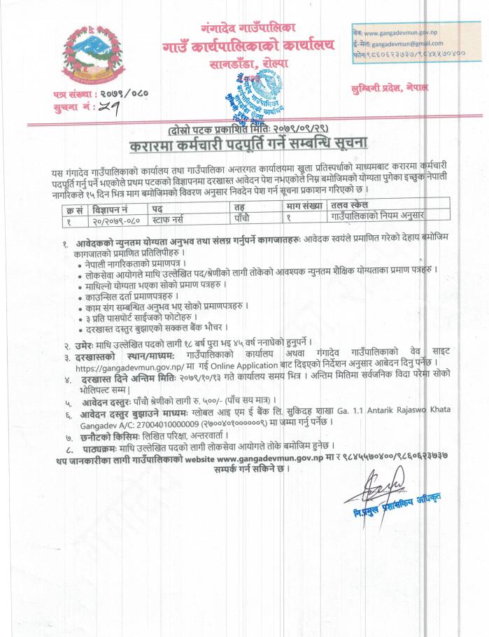 करारमा स्टाफ नर्स माग सम्बन्धमा