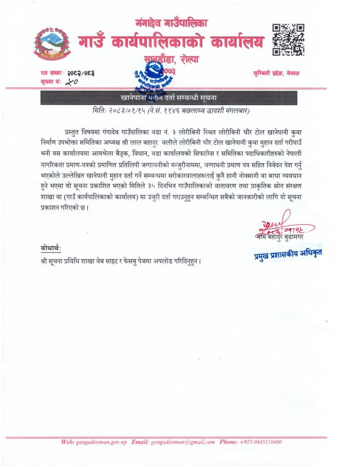 खानेपानी मुहान दर्ता सम्बन्धि सूचना