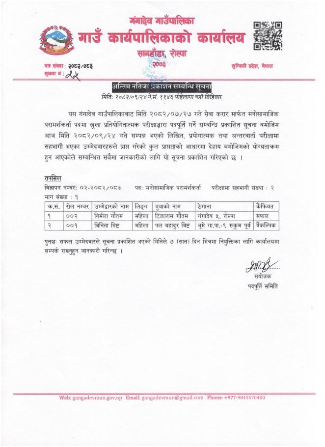 मनोसामाजिक परामर्शकर्ताको अन्तिम नतिजा प्रकाशन सम्बन्धि सूचना