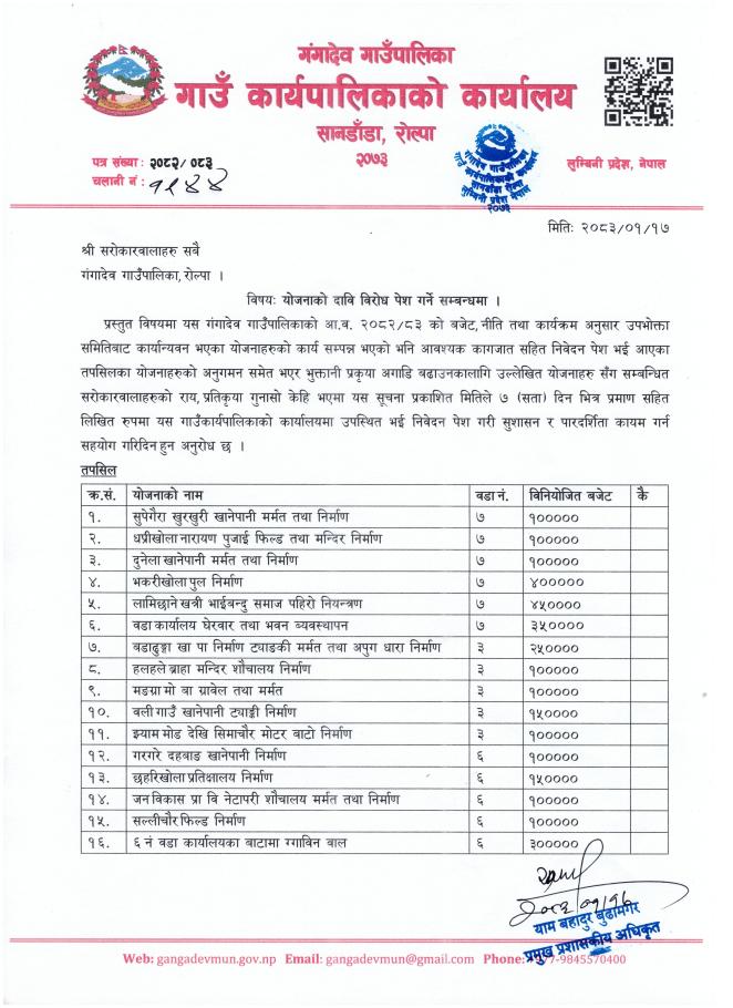 योजनाको दावि विरोध पेश गर्ने सम्बन्धमा
